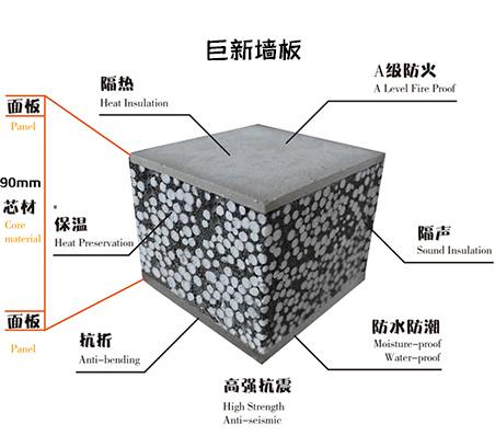 巨新復合實芯墻板質(zhì)量輕,對于建筑物基礎結構設計,可以優(yōu)化建筑物結構